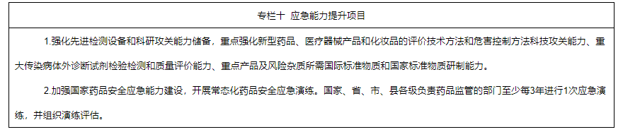 2.健全應(yīng)急管理制度機制。完善藥品安全事件應(yīng)急預(yù)案,健全應(yīng)急審評審批、檢驗檢測、監(jiān)督檢查機制,完善藥品儲備和供應(yīng)制度。加強藥品檢驗評價通用技術(shù)和關(guān)鍵技術(shù)研究,提升緊急情況下快速建立對新型藥品、醫(yī)療器械產(chǎn)品,特別是重大傳染病體外診斷試劑、疫苗、抗體藥物等檢驗評價技術(shù)能力。