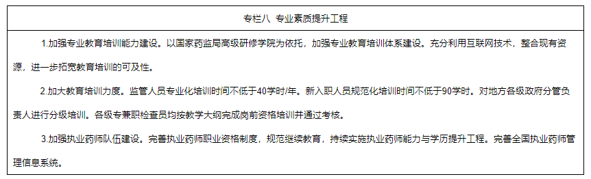 專業(yè)人才隊伍建設(shè)取得較大進展。培養(yǎng)一批具備國際先進水平的高層次審評員、檢查員和檢驗檢測領(lǐng)域?qū)I(yè)素質(zhì)過硬的學(xué)科帶頭人。藥品監(jiān)管隊伍專業(yè)素質(zhì)明顯提升,隊伍專業(yè)化建設(shè)取得積極成效。